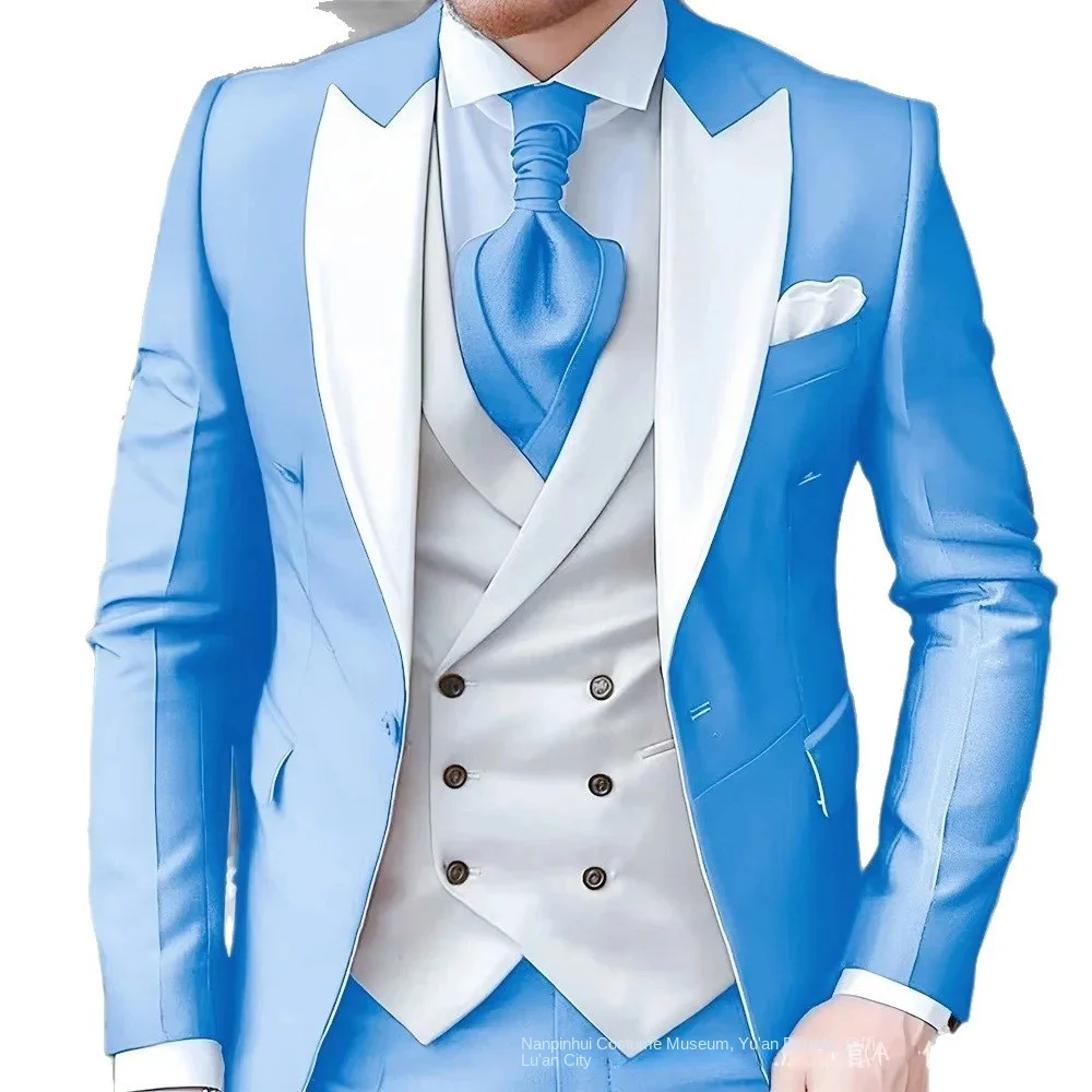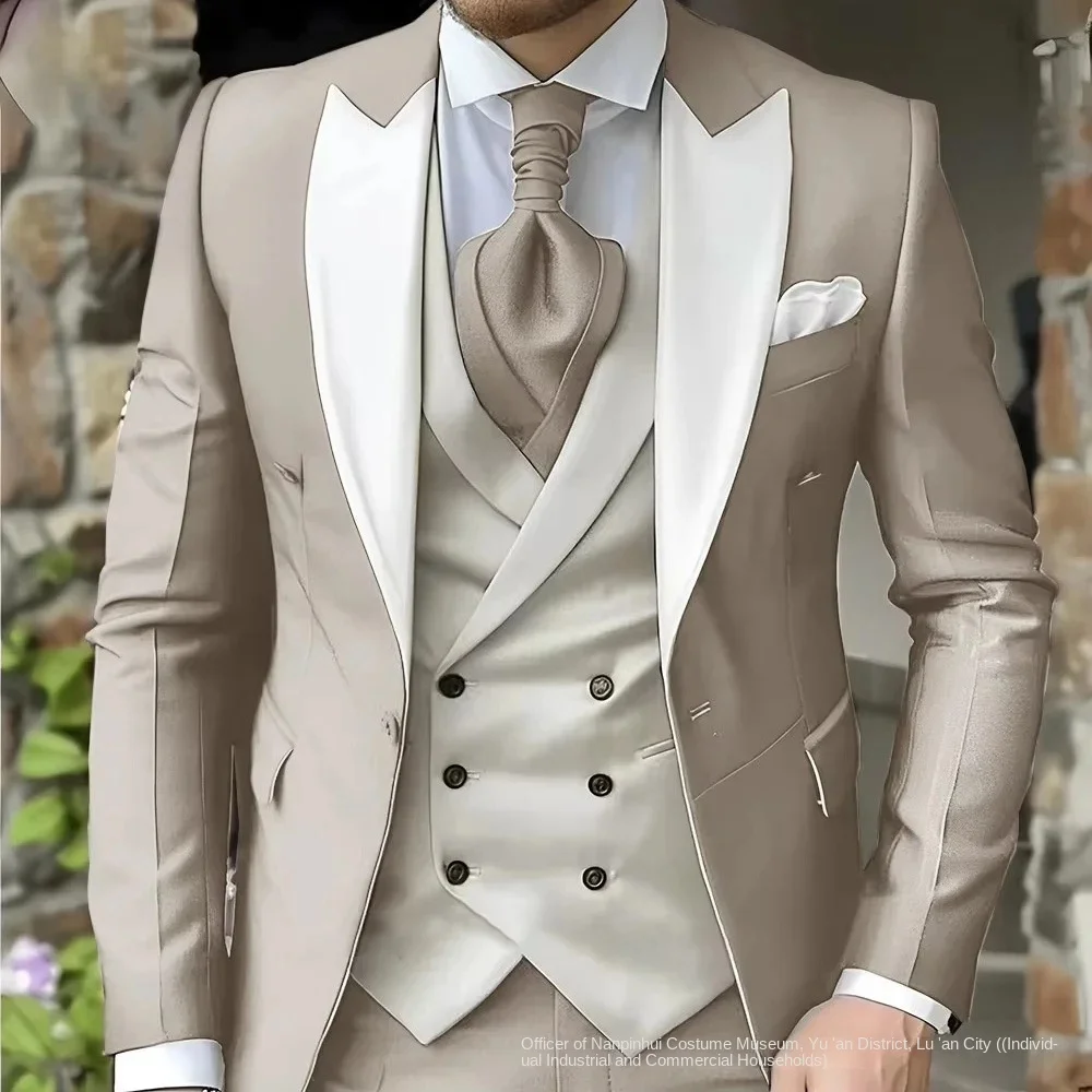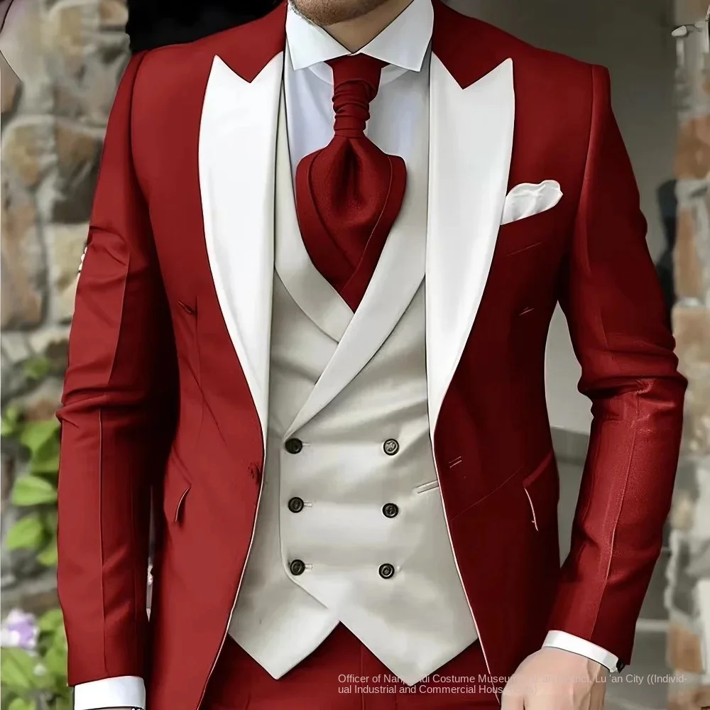 Elegant Wedding 3 Piece Slim-fit Jacket Pants Vest Full Set Luxury Single Breasted Mandarin Collar Purple Men's Suits Blazer